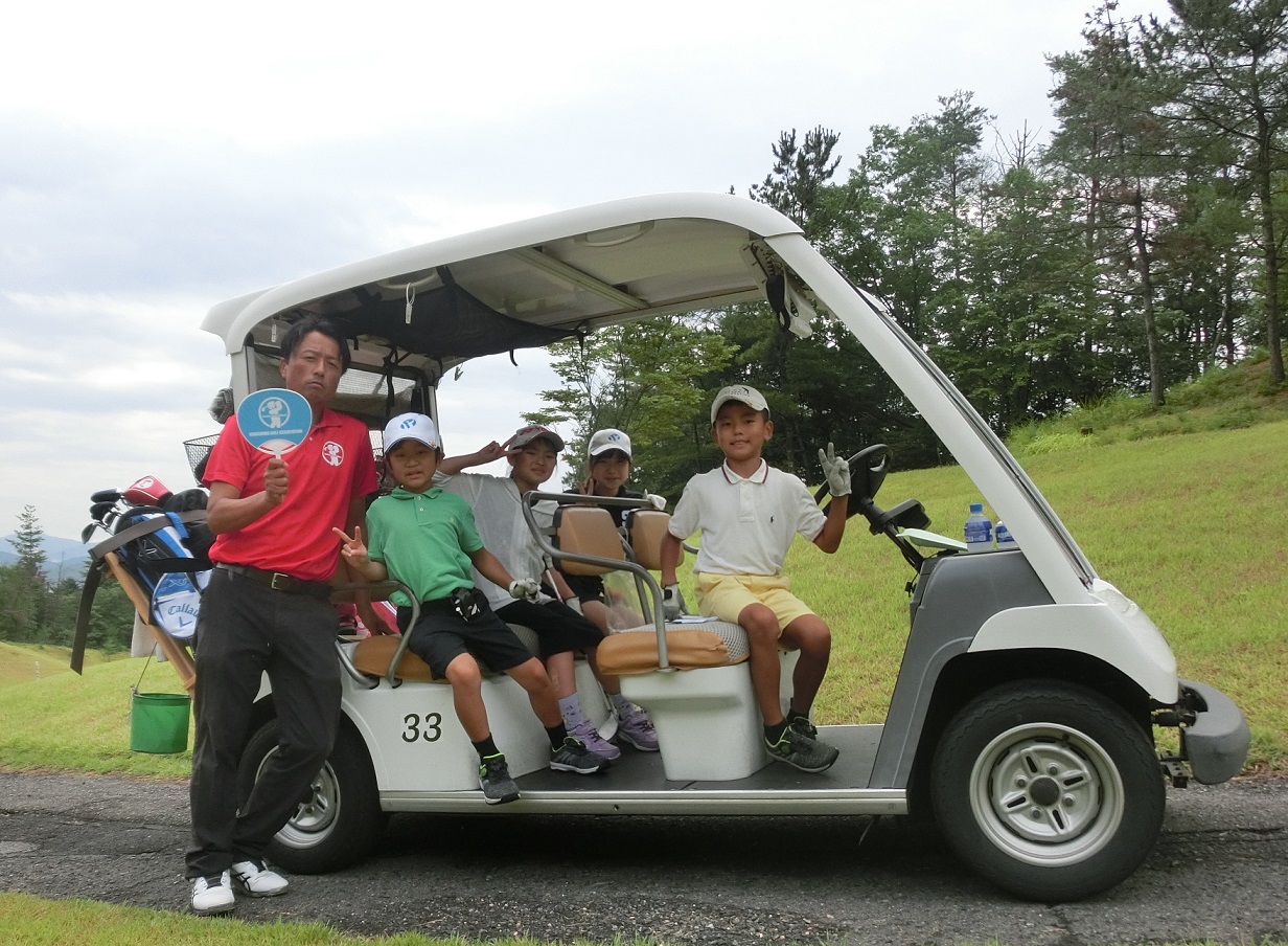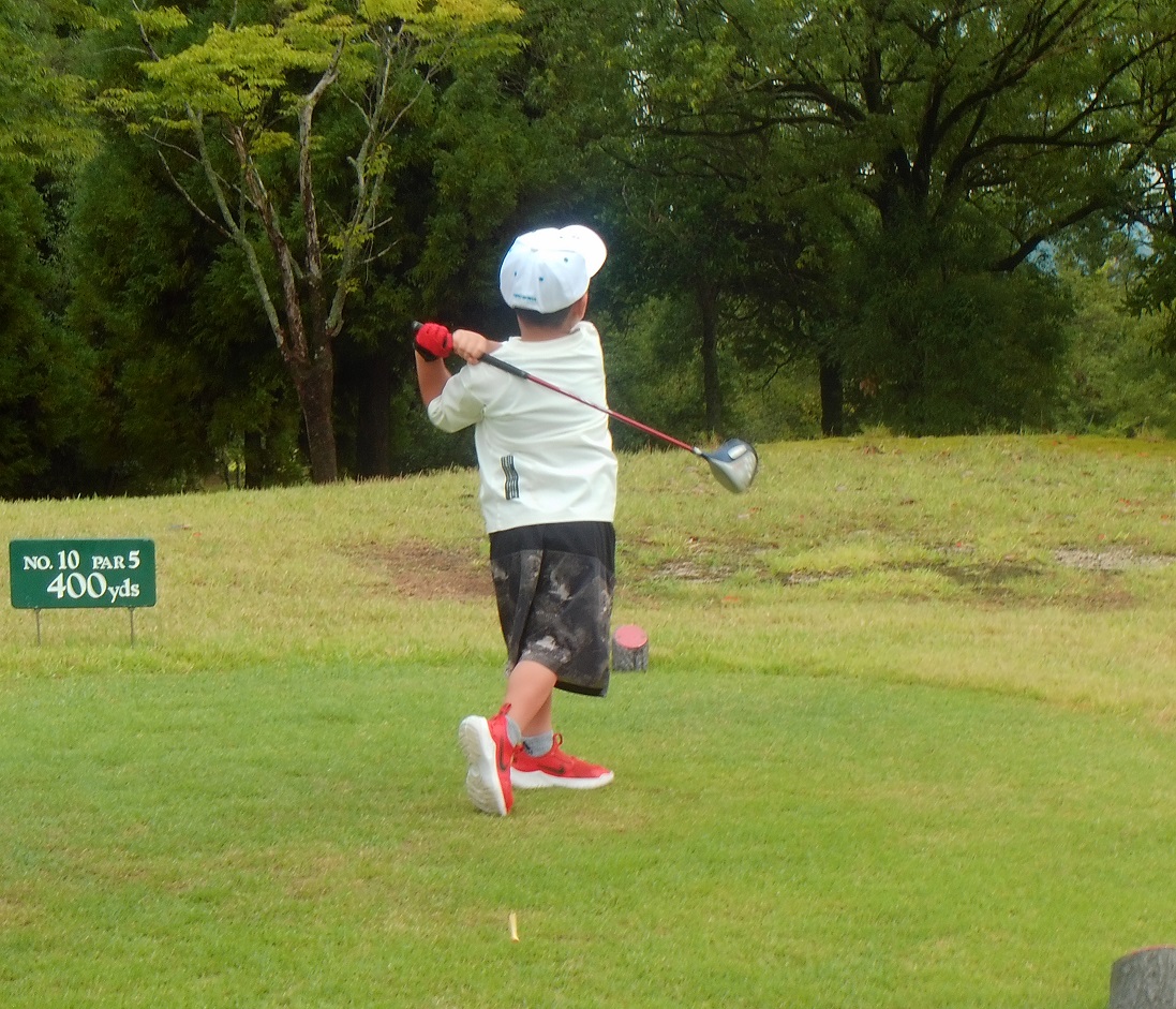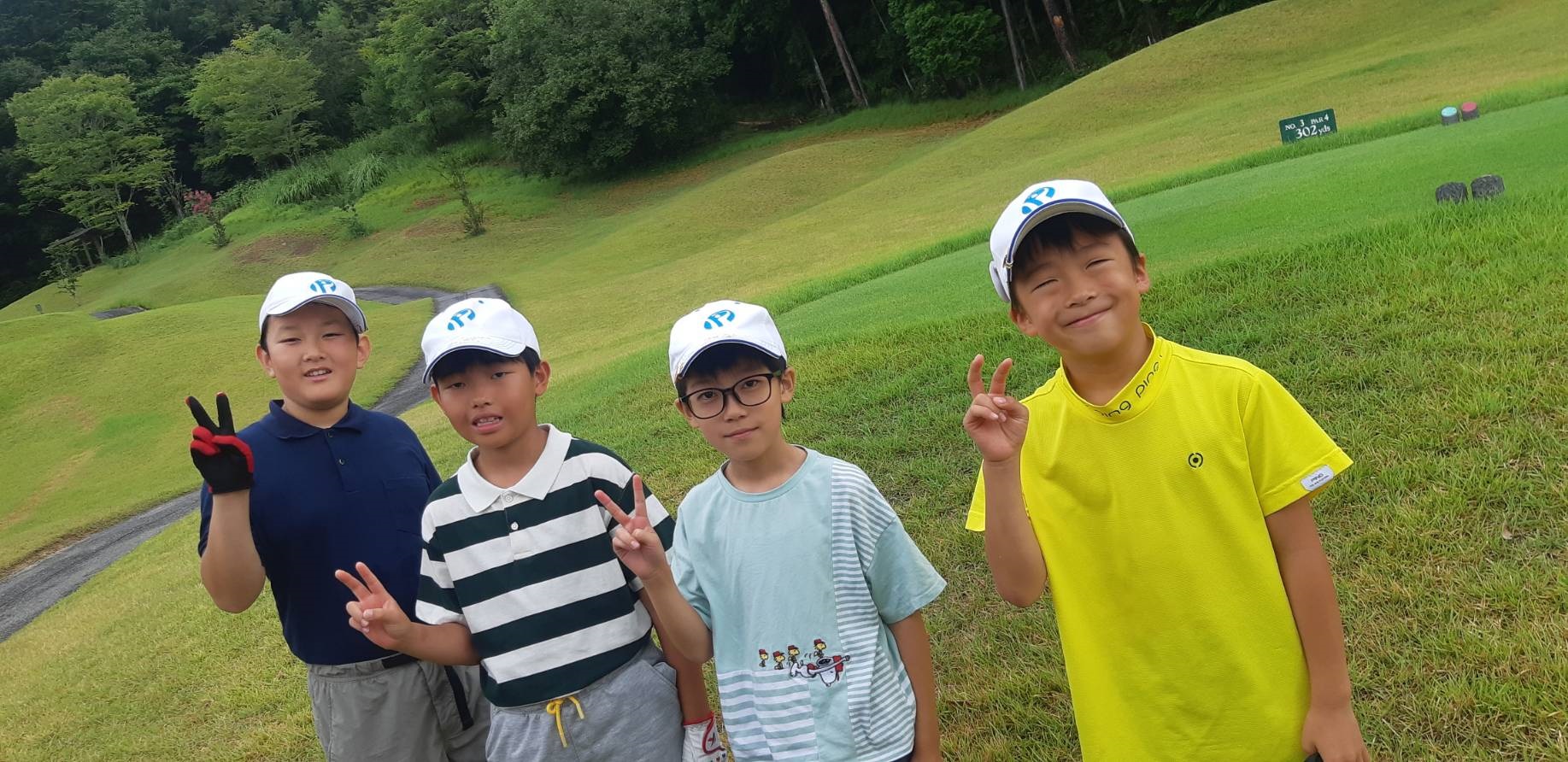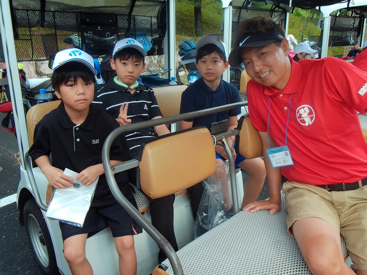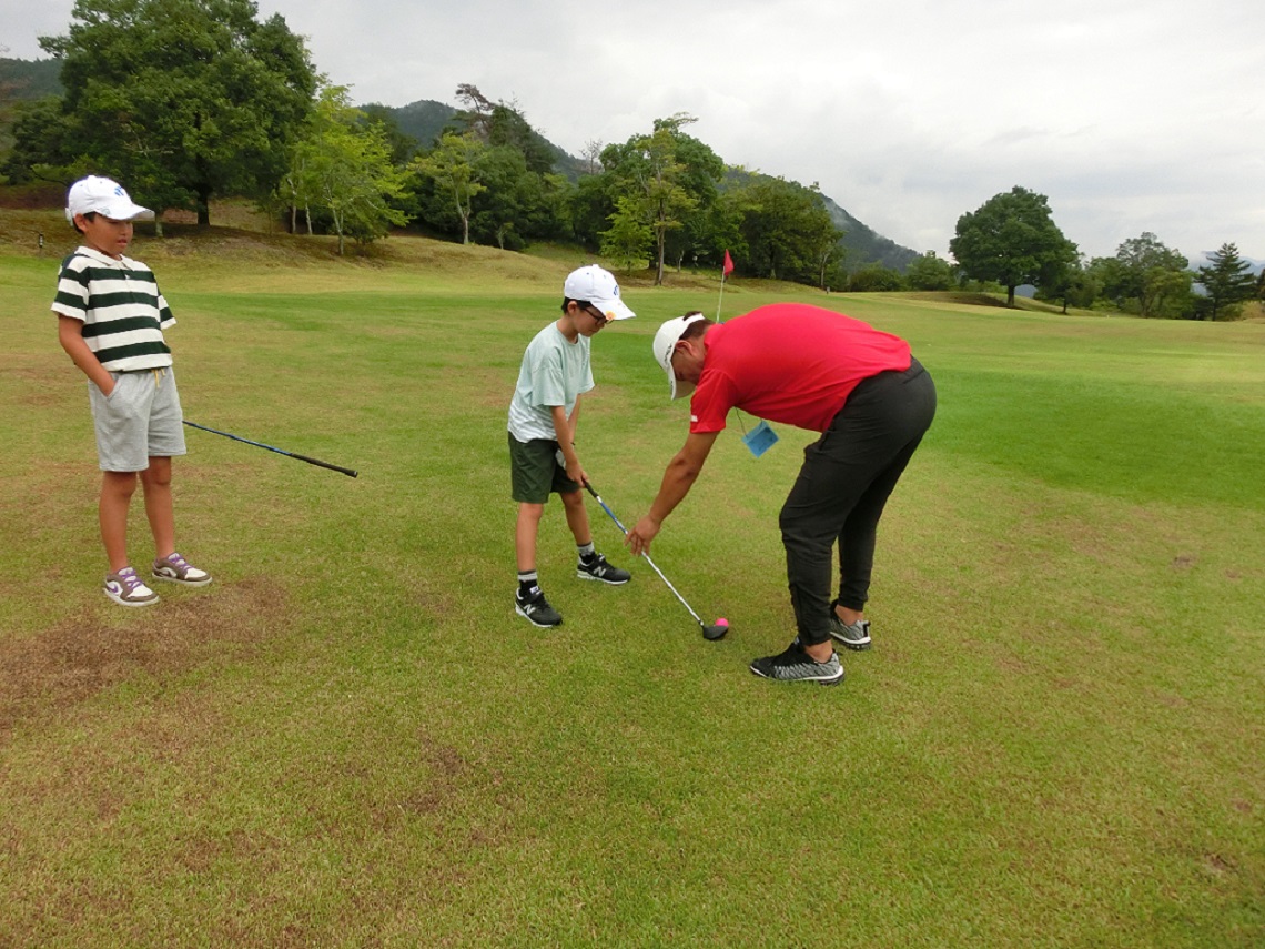 未明からの雨の影響により、予定より1時間遅れで開始しました。天候も回復して、子ども達は、自然の中で虫を見つけたり、広いコースを楽しんでラウンドしていました。