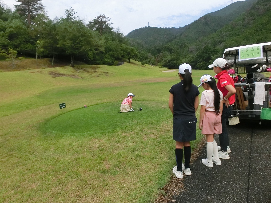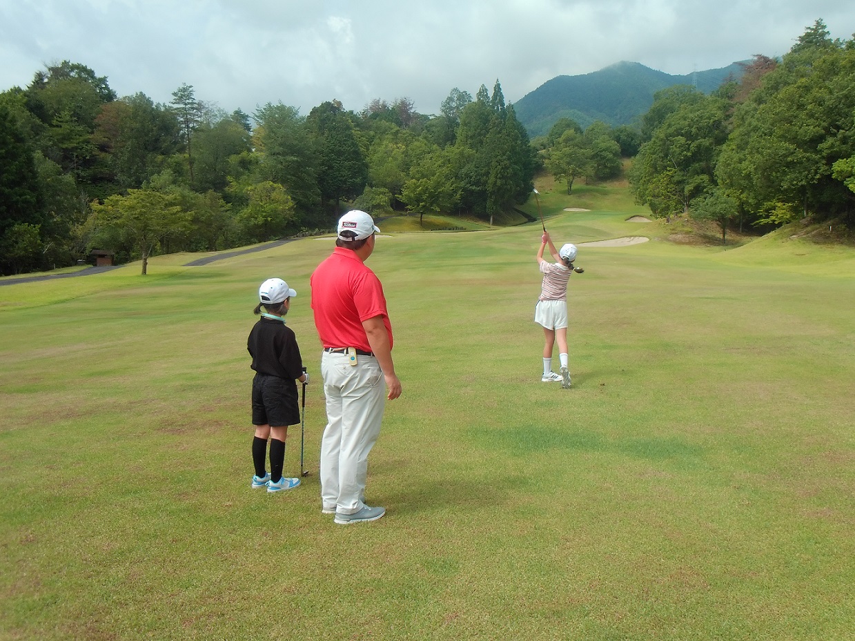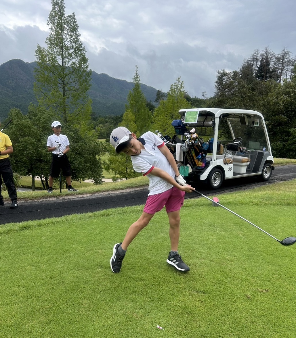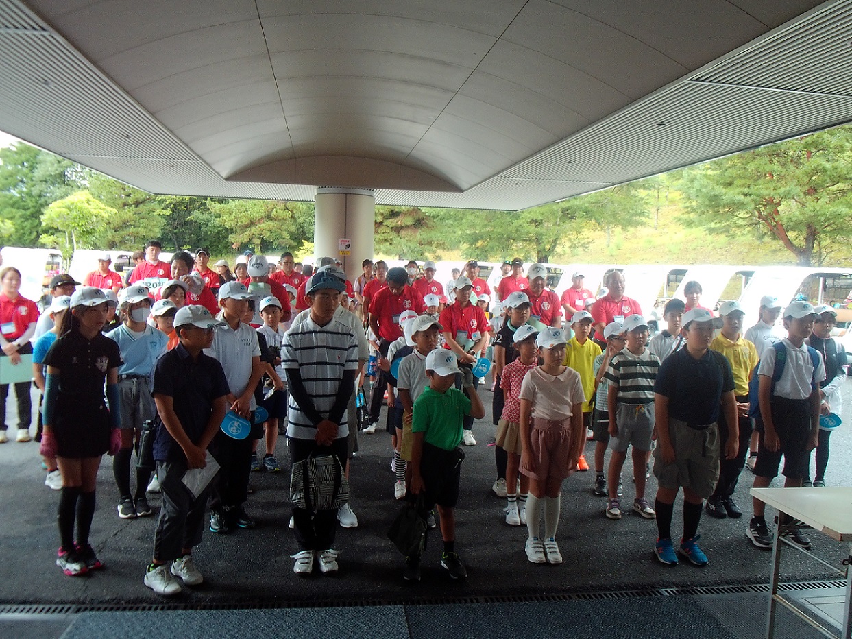 未明からの雨の影響により、予定より1時間遅れで開始しました。天候も回復して、子ども達は、自然の中で虫を見つけたり、広いコースを楽しんでラウンドしていました。